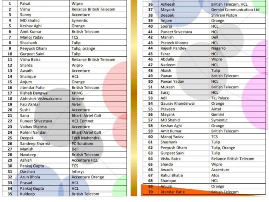 Our alumni are now thriving at Wipro, HCL, British Telecom, Accenture, Orange, Airtel, Ericsson, Microsoft, Etisalat Dubai, and more.